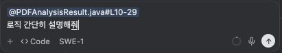 간단한 요청을 적어 보냄 (ex: 로직 간단히 설명해줘)