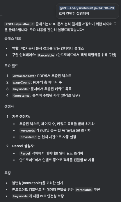 - 프로젝트 전체 문맥을 분석해 정확한 답변 제공