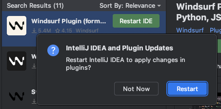 Intellij IDEA → Settings → Plugins(Mac 기준: ⌘ + ,) - Marketplace 탭 선택 후 "Windsurf" 검색