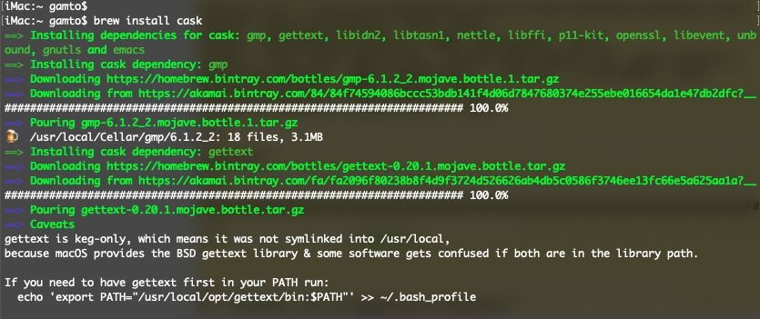 2. 여러가지 맥용 GUI 어플리케이션 또는 폰트, 플러그인 등을 설치할수 있는 cask 를 아래와 같이 설치합니다.