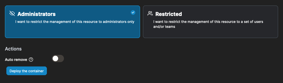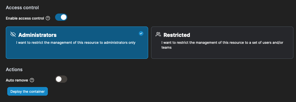 Deploy the container 버튼을 클릭하여 컨테이너를 생성합니다.