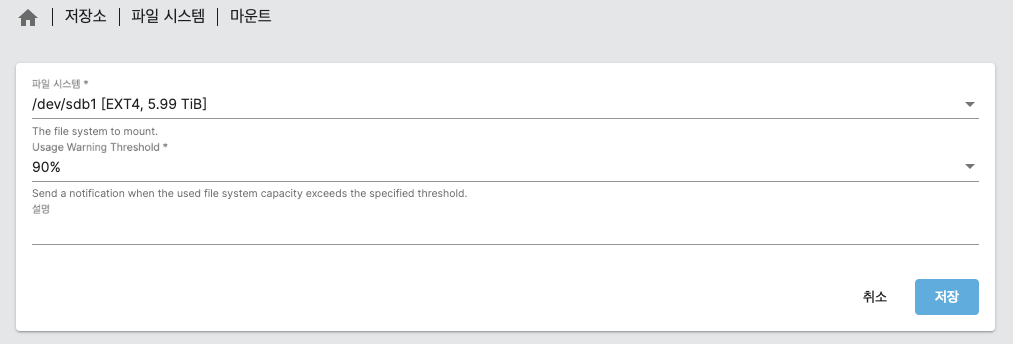 저장소로 사용하기 위해 파일시스템을 마운트 합니다.