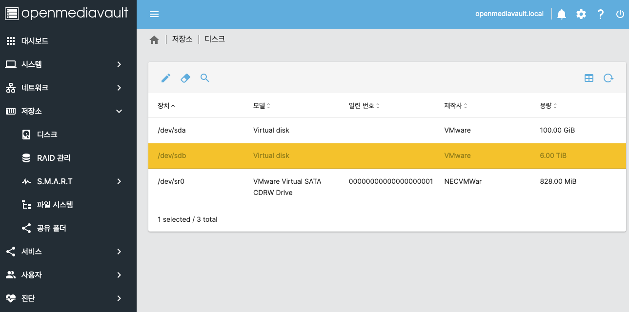 NextCloud에서 사용할 저장소로 SSD 를 하나 준비했습니다.