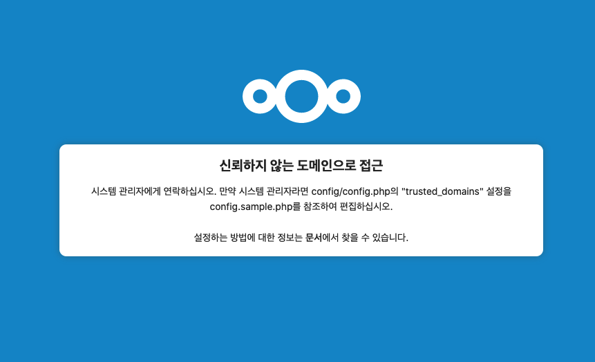 간단하게 NextCloud의 컨테이너 콘솔을 열어서 도메인을 추가하면 해결됩니다.