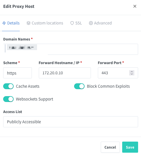 이전처럼NginxProxyManager 에 proxy host를 설정하여 접속합니다.