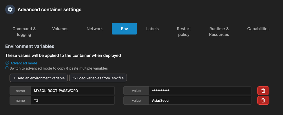 MYSQL_ROOT_PASSWORD = root 비밀번호