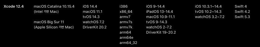 해당 OS에 지원되는 Xcode 버전을 확인합니다.