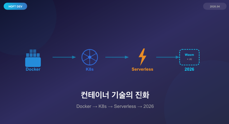 Docker가 왜 혁명이었는지 → Kubernetes가 어떻게 사실상 표준이 되었는지 → 서버리스가 해결한 것과 못 한 것 → 2026년 Wasm 서버리스 2.0과 플랫폼 엔지니어링 → 실무에서 어떤 조합을 선택해야 하는지. 15년차 인프라 엔지니어 관점에서 기술 선택의 기준까지 정리합니다.